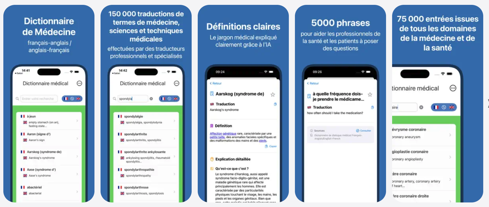Retrouvez l'application Dictionnaire Médical Bilingue dans l'Apple Store: https://apps.apple.com/fr/app/dictionnaire-m%C3%A9dical-bilingue/id6514324551